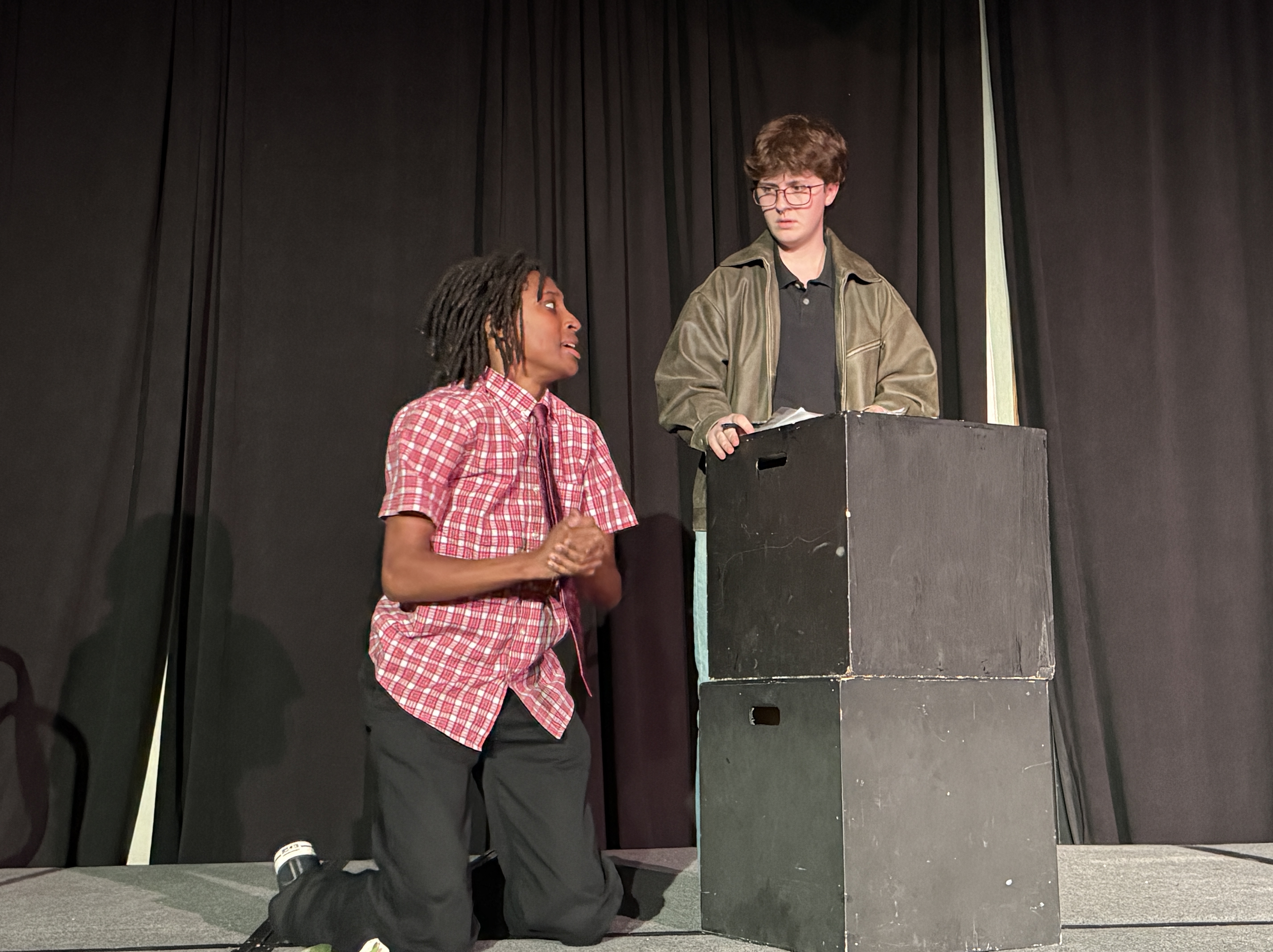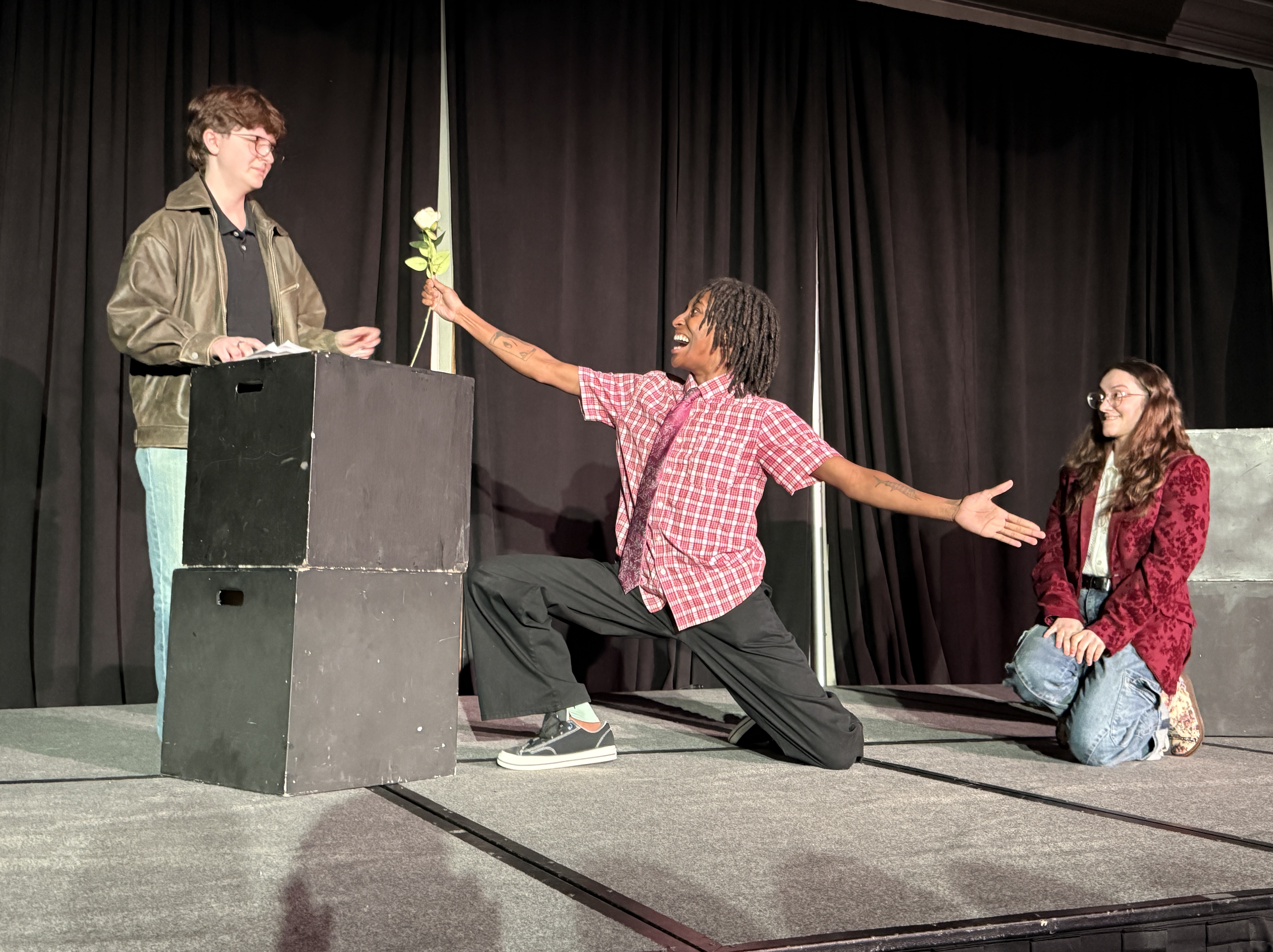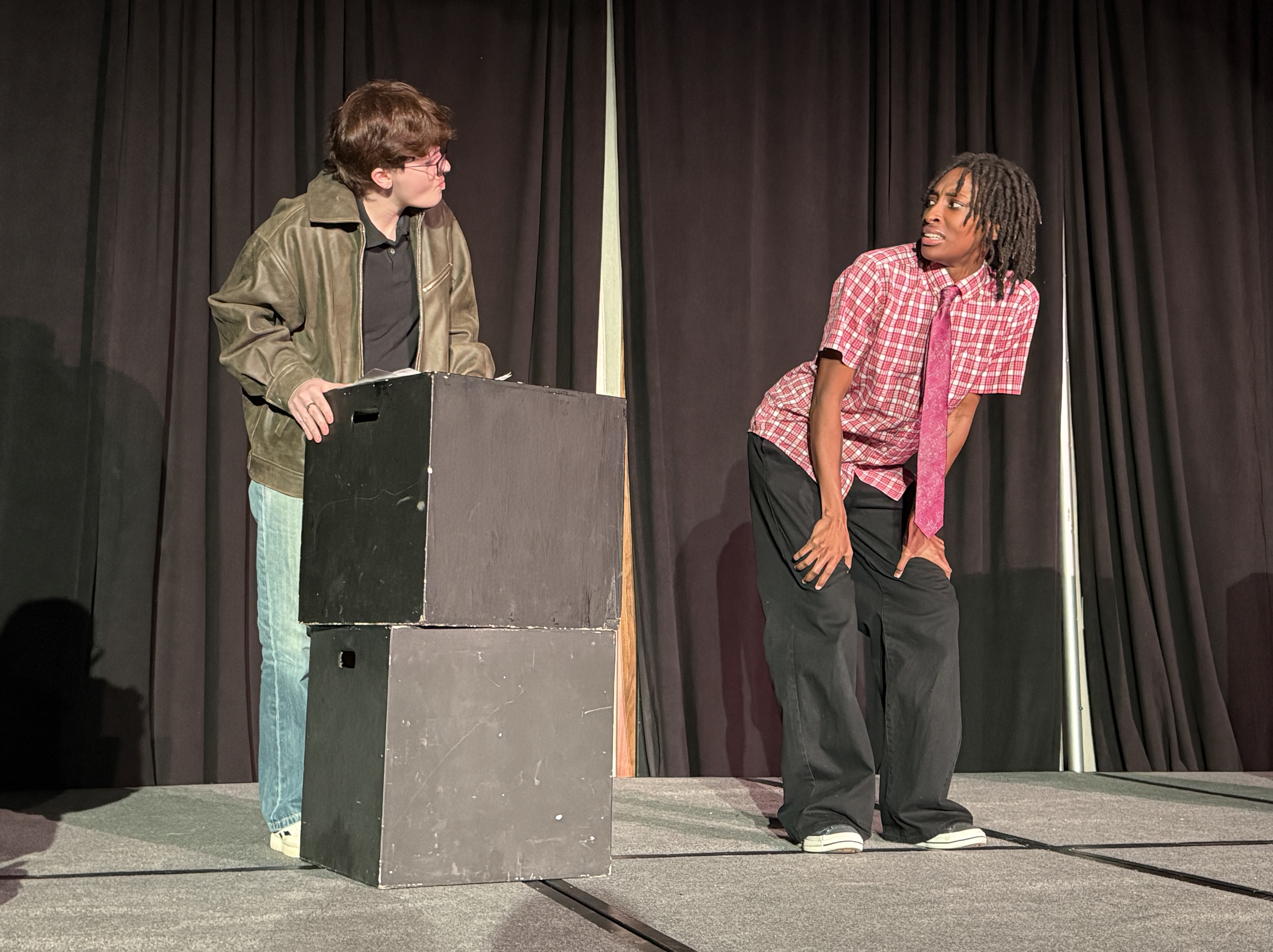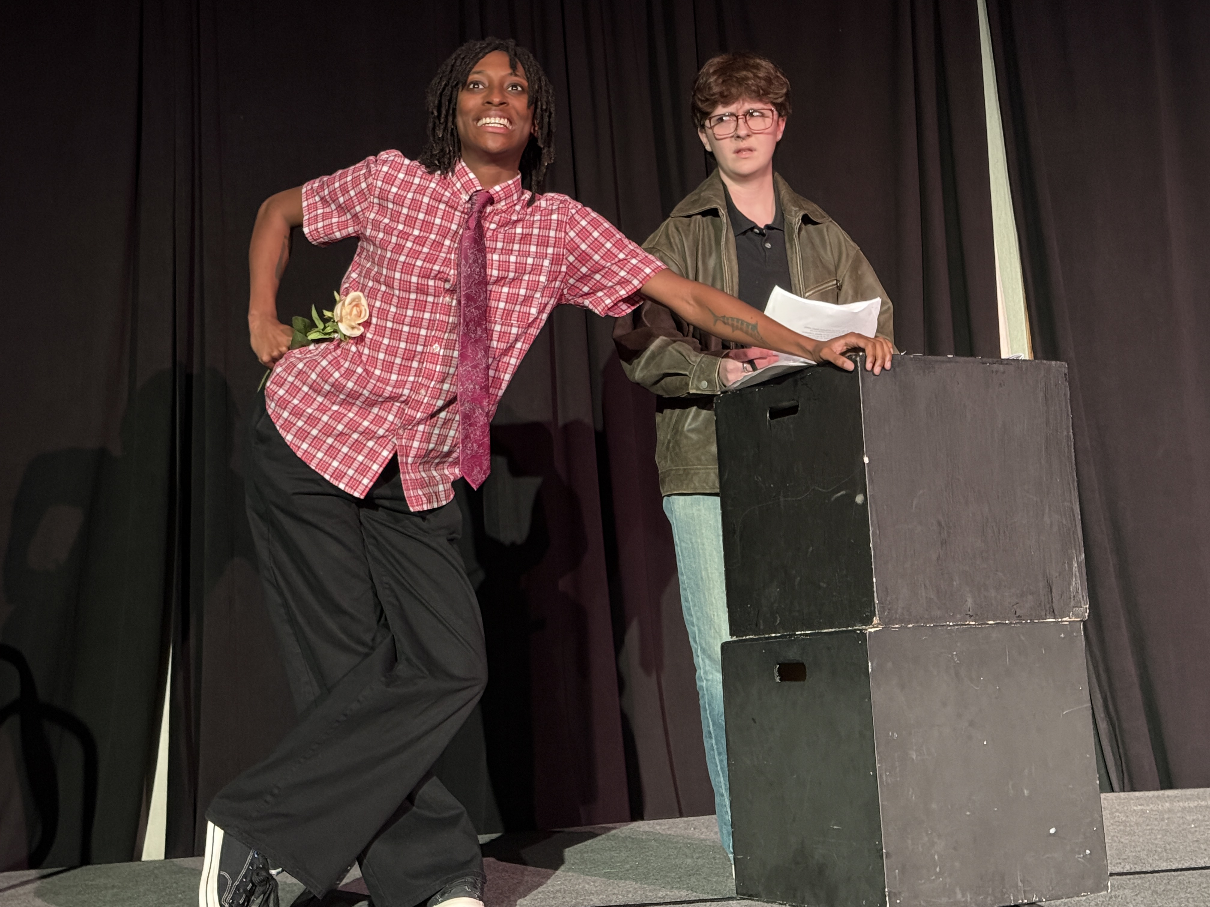 During the rehearsal process, I distinctly remember describing Jimmy Cider as “Harold Hill if he was played by Jim Carrey,” and Milo Jones delivered. Milo as Jimmy brought leaps and bounds of high energy that clashed perfectly with that of Maggz Day’s Clipperta, creating a perfect comedic duality as sarcastic deadpan wit bounced off farcical schemes, all with an extra ingredient of chaos sprinkled in perfectly by Kayla Michelle Hutto’s Sniv.